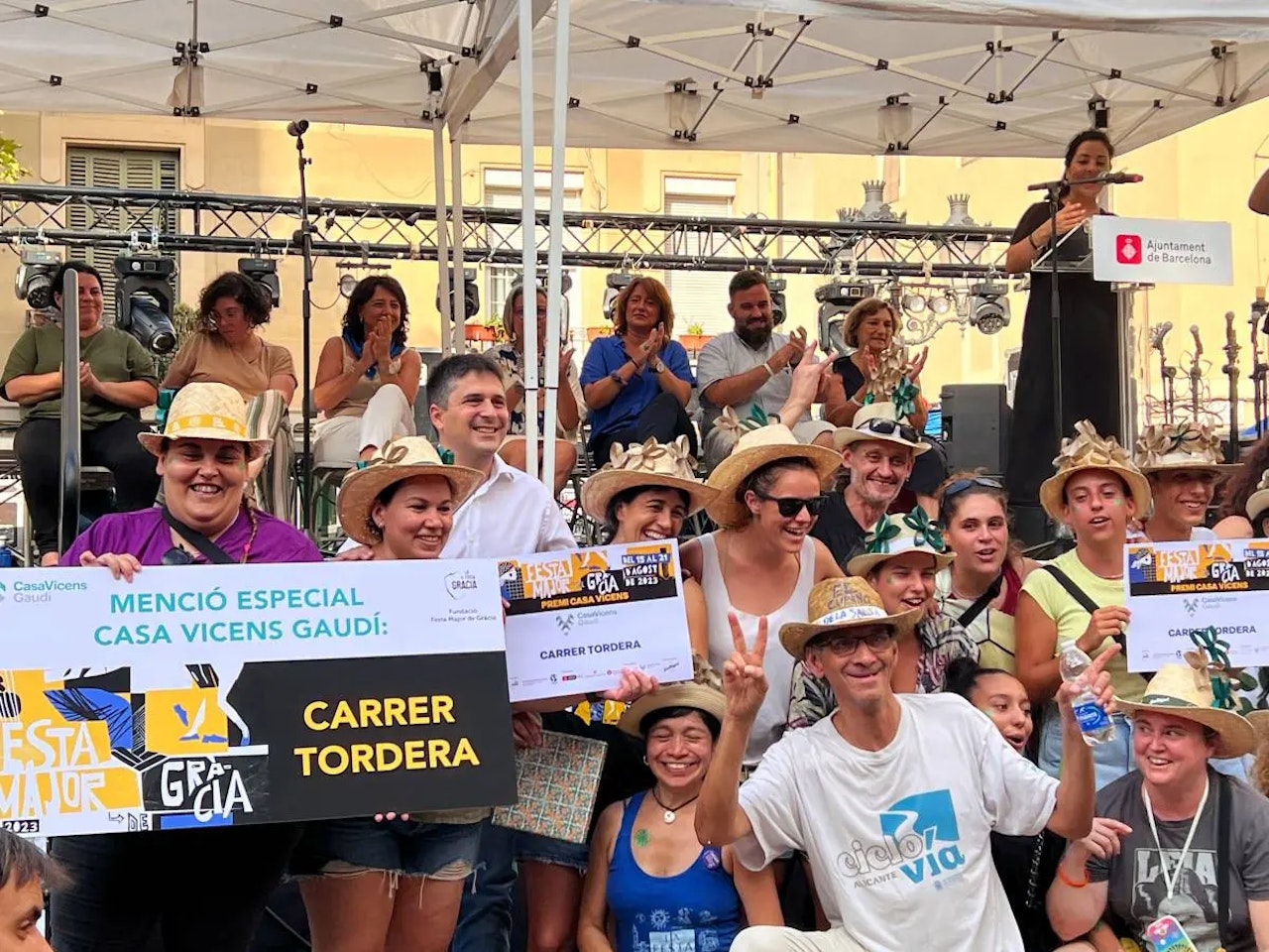Durant l’entrega de premis del concurs de carrers decorats, que va tenir lloc ahir a la tarda a la Plaça de la Vila de Gràcia, el jurat de Casa Vicens va concedir el seu premi al carrer Tordera i la seva temàtica modernista. Tal com van expressar durant l’entrega “per recordar un dels moviments artístics més icònics de la nostra ciutat, per reivindicar tècniques artesanals com els vitralls o la ceràmica, per la bona execució artística i resolució tècnica de l’emplomat o el vidre policromat i per la bona representació de les diferents xemeneies del Palau Güell i de la Casa Milà, obres de l’arquitecte que va començar la seva carrera amb la mateixa Casa Vicens hem decidit atorgar al carrer Tordera el nostre premi”.