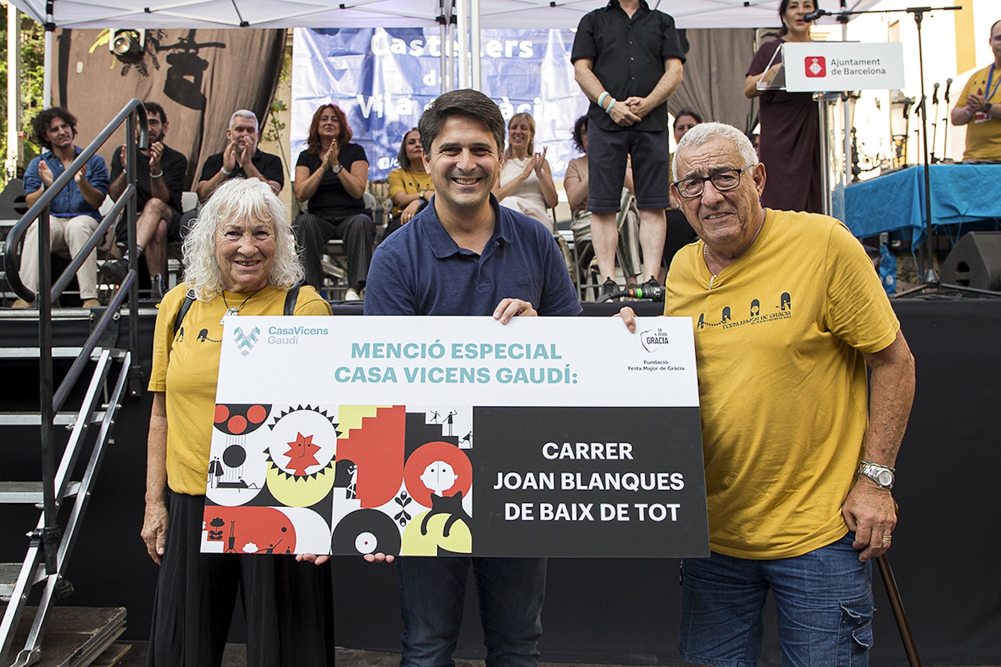 L’entrega s’ha dut a terme aquest dilluns a la tarda a la Plaça de la Vila de Gràcia. En l’acte de lliurament, el jurat de Casa Vicens ha concedit el seu premi al carrer Joan Blanques de Baix de Tot “per la bona execució artística i bona resolució tècnica, per apropar un país a través de la seva flora, l’estil de vida, l’esport, l’arquitectura, el clima o la gastronomia”. El director de Casa Vicens, Emili Masferrer ha lliurat el guardó i ha subratllat “per reivindicar tècniques artesanals com la ceràmica de Delft i la pintura d’artistes com Rembrandt o Vincent Van Gogh hem decidit atorgar al carrer Joan Blanques de Baix de Tot el nostre premi”.