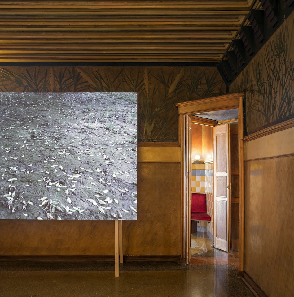The location of the art work in the main bedroom of the Vicens household evokes the idea of the rest that we feel when we breathe deeply and calmly. At the same time, the appearance of leaves in Glenda León’s video engages in conversation with this space, where Gaudí placed a stucco with a sgrafitto of ferns, interspersed with red fruits and leaves on the one hand and a stucco with a sgrafitto of sugar cane and reeds interspersed with vine shoots on the other.